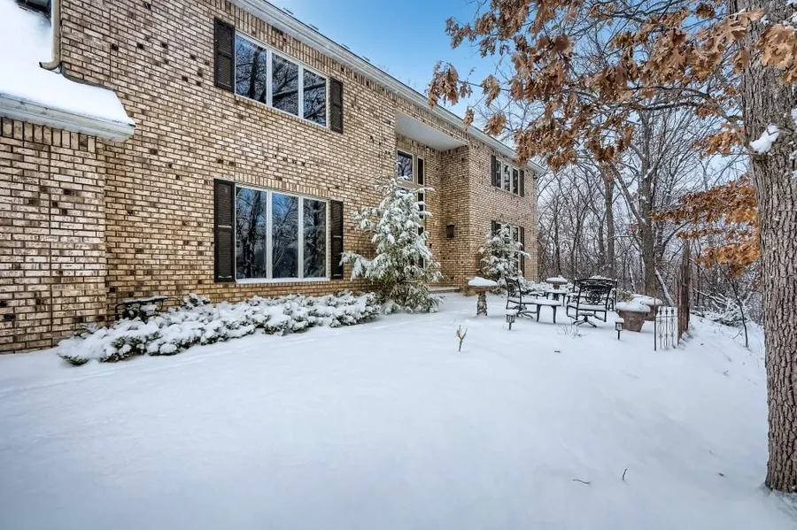 Enchanted wooded privacy retreat sited on 2.5 acres in the heart of Lakeville. Amazing spatial architecture throughout this two-story walk-out. Stunning 2-story foyer, floor to ceiling newer Anderson windows that will wow you! New siding 2021. Newer roof & gutters, carpet & stainless appliances along w/ addition of 4-season porch & office/flex room off vaulted owners bedroom ensuite w/fireplace & newer bathrooms. Bay window views of nature out your gourmet kitchen window, oversized center island, Corian counters, hardwood floors, ample pantry & cabinets with a secret room. Perfect blended grounds with new stone patio, elongated deck overlooking nature. Family room w/custom wood tray vault & fireplace w/French doors leading to formal dining & living rooms includes baby grand piano. Entertain in your lower expansive family room w/built-ins & brick fireplace, separate billiards room & pool ...