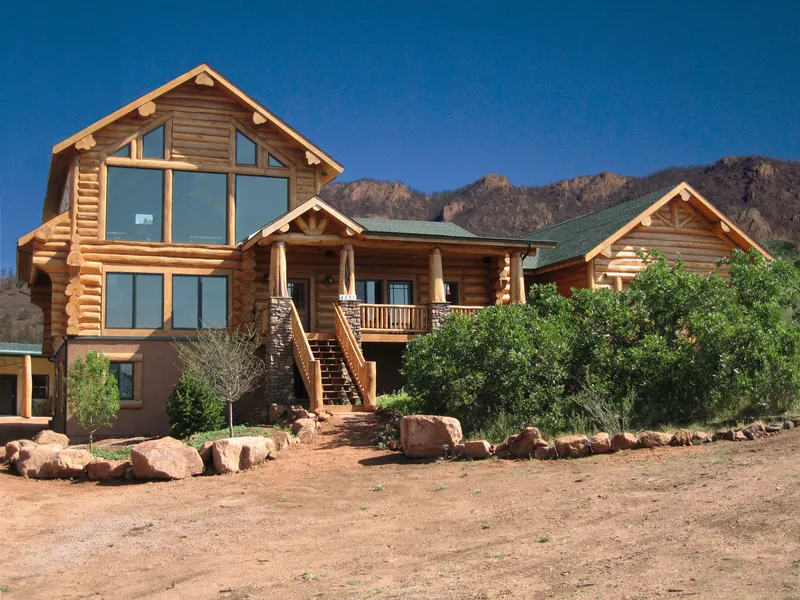 Secluded, mountain setting, just 15 minutes from Downtown Colorado Springs. Constructed using handcrafted Western Red Cedar Logs from British Columbia with flared tips and saddlenotch corners. Soaring 25' ceiling in living room with gorgeous stone fireplace with wood burning fire box. Gourmet kitchen with custom knotty alder cabinets with granite counters and large island with undermounted prep sink, high end appliances, gas stove and pot filler. White oak hardwood. The the main level Master is a retreat with stone fireplace and exposed logs. Spa like master bath wtih soaking tub, stand alone shower, granite counters. The floor plan is designed with one level in mind as laundry flowing easily off of master bath or accessed from the mud room. Approximately 50 windows are in the home to enjoy the wonderful mountain views. Large log features such as stairway to the loft, game ...