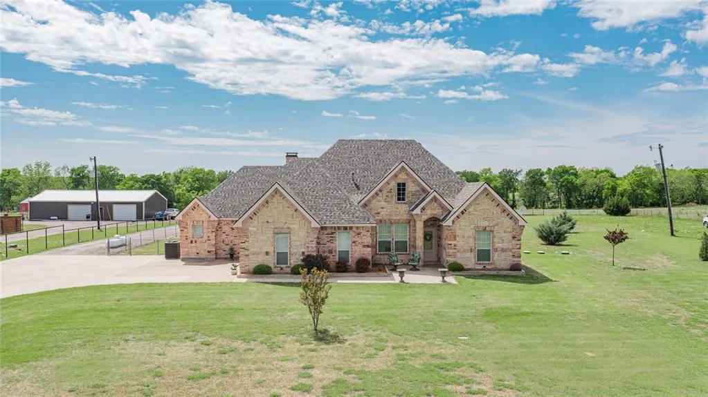 Stunning steel frame custom home on 2.5 acres, plus a 40 X 20 workshop. Enjoy the paved driveway, a plus in the country. Lots of trees added to the property but room left in the fenced back yard for a pool. Imagine relaxing on the covered back porch enjoying your coffee or tea, knowing you are only 25 minutes from the new Bois D'arc Lake. Country lifestyle but still close to the city for your shopping needs. To make this even better, the refrigerator and washer and dryer will convey with acceptable offer. They are even willing to leave the pool table! This home is amazing and all the important stuff has been replaced in the last couple of years. No worrying about the HVAC, roof or water heater. Come see this home, but please overlook our packing. We are getting our memories in boxes as quick as we can. It will be a little cluttered during this process but you will still be able to see this is an amazing home. Almost forgot to mention the beautiful sunsets.