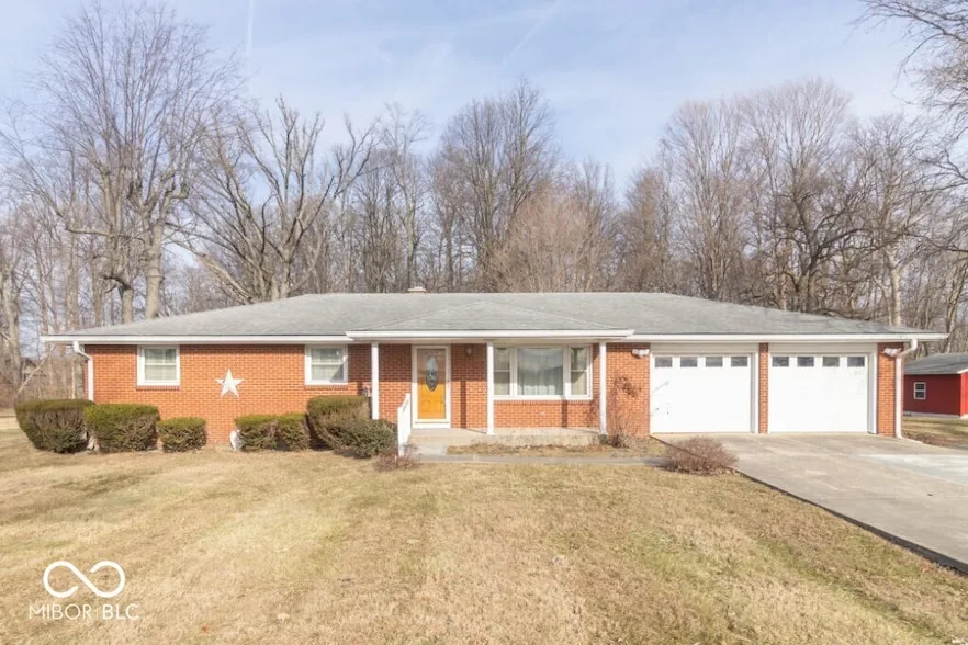 This well-cared-for all-brick ranch offers comfortable living on 2 beautiful acres in a convenient location along US Hwy 36. The home features 3 bedrooms and 2 full baths with nice-sized rooms, hardwood floors, newer LVP flooring, fresh paint, and plenty of storage throughout. A spacious living room provides ample gathering space, while the family room with a fireplace adds warmth and character. An enclosed sun porch overlooks the private backyard and offers the perfect spot for wildlife viewing. The large eat-in kitchen includes abundant counter space and cabinetry, and all appliances remain with the sale, including the washer and dryer. An attached 2-car garage is an additional convenience. The outside features do not disappoint, the property boasts two substantial barns that add value and use options. One oversized barn is large enough to accommodate an RV, while the second offers excellent additional storage or workshop space. The expansive yard and private backyard create an ideal setting for outdoor enjoyment. Move-in ready and meticulously maintained, this property offers space, functionality, and versatility both inside and out.