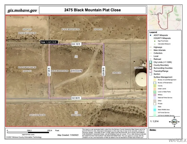 Great property with great views. Sitting on 2.5 acres with the best hilltop view in town. Build your dream house here. Water and Electricity are to the property. Ready to build. No HOA. Not far from shopping and medical facilities. Laughlin nearby for gaming and dining. No time frame for building or not to build. Excellent views from the ridge, Bullhead City lights, Arizona, Nevada and California mountains. Easy access to both Highway 95 and the Bullhead Parkway. Buyer(s) to verify all material facts: square footage, zoning, utilities. Property may not show up in county records with address