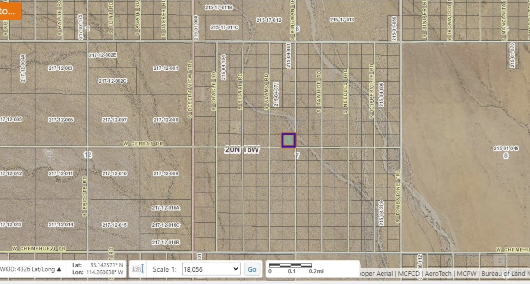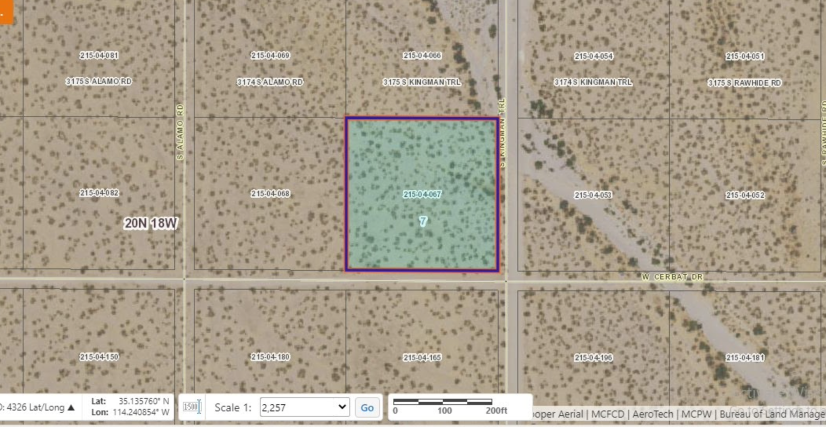 Coordinates: NW GPS: 35.135256 N , 114.238161 W NE GPS: 35.135256 N , 114.237120 W (ROAD) SW GPS: 35.134405 N , 114.238161 W (ROAD) SE GPS: 35.134405 N , 114.237120 W (CORNER ROAD)