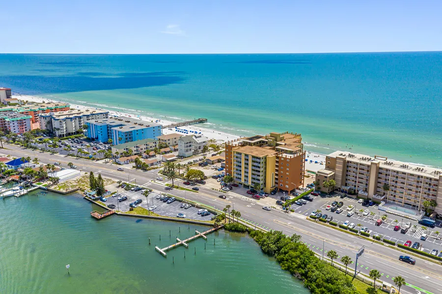Affordable Waterfront Property. Remodeled - Large 875 Sq Feet - Furnished - One Bedroom Condo - Gulf Front Building - with Direct Intracoastal Water Views. 7 Day Rental Ok. Average Yearly Income $40,000 Plus. Enjoy the best of both Worlds. Perfect for watching the Intracoastal Boating Activity, Morning Sun or a Beautiful Moonrise in the Evening - Or relax at the Heated Gulf Front Pool, Take a walk on the Beach or a nice refreshing swim in the Gulf with September Water Temperatures around 80 /85 Degrees.. Have a Boat or rent a Boat - Use the Slips right across the street on the Intracoastal or Use the Fishing Pier to Catch Dinner. Makes for a fun weekend.. Updated Kitchen - Bathroom, Flooring, A/C etc. Volga Blue Granite - Tile Flooring Thru out. . Ready for Immediate Occupancy . Plenty of Choices Here : Winter Retreat With Summer Income - Short Term Rental with Minimum Personal Use & Maximum Income or Long Term Lease as a Portfolio Asset or 1031 Exchange.. Property has a Large Gulf Front Heated Pool - Resort Like Amenities: Beach Side Tiki Hut, Beach Volleyball , Shuffleboard, BBQ Grills, Laundry Room on Every Floor. Boat Docks ( FCFS ) and Fishing Pier across the street on the Intracoastal. Unit Conveys with Parking Spot 209. Rent the Condo Yourself ( $43,000 Yearly Gross Income ) or use the On-site Vacation Office - Your Choice. Great Little 1031 Investment or Family Beach Getaway. LOCATED ON THE ' NARROWS ' IN INDIAN SHORES FL- NOTED FOR ITS SEMI PRIVATE BEACHES DUE TO ITS LIMITED PUBLIC PARKING... SHORT WALK TO RESTAURANTS & NIGHTLIFE...REFER TO AGENT REMARKS FOR ACCESS..