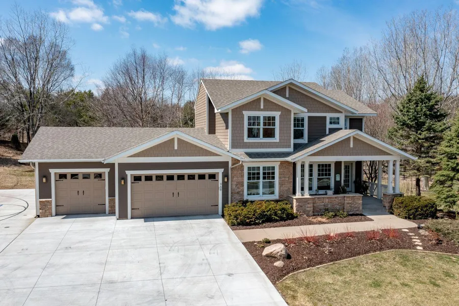 Welcome to your own oasis in this hectic world. Set on 2+ acres, this custom built home will capture your heart the moment you drive up. Walking through the front door you are welcomed into a spacious and charming foyer that connects you to the formal dining area and living room. The double-sided fireplace creates a perfect ambiance as you look between the kitchen and living room. The large master suite offers a serene view of the wooded lot. The lower level is the entertainer's dream with a bar area, large family room, and access to the lower patio. Don't miss the 10' garage ceilings, covered porch off the kitchen, and basketball court! Brand new concrete driveway and parking pad adds to the amazing curb appeal of this home!