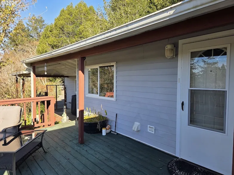 Bright and sunny ocean and forest view home on over 2 acres of privacy! Enjoy the best of both worlds with sweeping ocean and forested views. Relax or entertain year-round on the large,covered deck with clear wind guards, perfect for all-weather BBQs and soaking in the scenery. Inside, you ll find vaulted ceilings, skylights, and waterproof laminate flooring throughout. The spacious living room features a cozy woodstove, while central heat and air with a heat pump keep the home comfortable in every season. The kitchen is a cook s dream with abundant white cabinetry, a large island with sink and dishwasher, and all appliances included. The dining area offers built-in cabinets and a slider out to the deck, making it easy to enjoy indoor/outdoor living. The primary suite includes a tub/shower combo plus a separate stand-alone shower for easy access. Two additional bedrooms and a full guest ...
