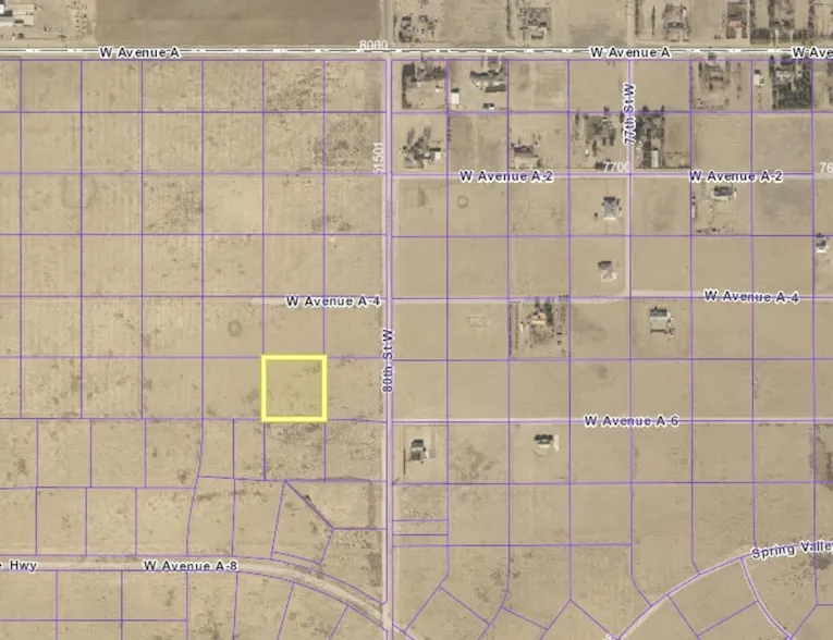 Research Parcel InformationVia 14fwy Exit Ave A and head West Turn left on 80th st w property is about a half mile down the road at W Ave A-6Use coordinates 34.815106, -118.274555