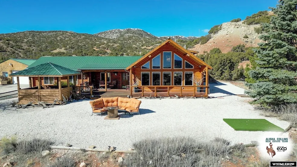 Lake Life Meets Year-Round Comfort on 2.53 Acres! Looking for the perfect blend of rustic charm, modern amenities, and outdoor fun? This gorgeous log-style home offers it all just minutes from the lake and only 30 minutes from Casper! Nestled on 2.53 peaceful acres, this 2-bedroom, 2-bathroom retreat features an open-concept layout with hickory cabinets, a gas stove, a cozy pellet stove, and a seating peninsula ideal for entertaining. Both bathrooms have custom tile work and unique vanities, adding style and personality throughout the home. Step outside and you ll find an entertainer s dream a large covered front porch, a spacious back patio, and a gas-wired fire pit or spa-ready area to enjoy Wyoming s beautiful nights. There s even a 110-yard golf green with Astroturf and a sand trap, horseshoe pits, and a fenced dog run. Hosting guests? A separate guest house provides a private ge...