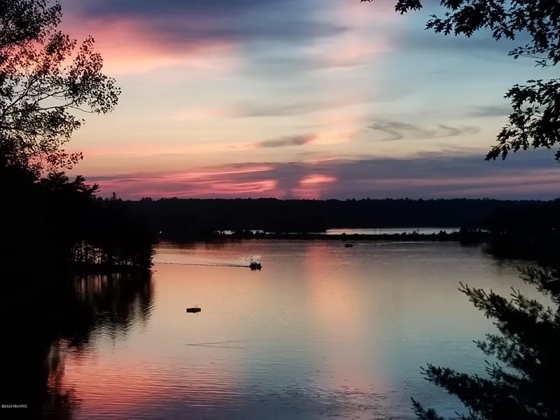 Welcome to a quintessential Michigan retreat/year around home! This is a must see with 5 bedrooms, 31/2 baths, 3,000 sq ft m/l, huge living/entertainment spaces. It is an architectural delight featuring dramatic lines and beautiful tongue & groove wood accents. Picturesque, an elevated 2.54 acre site provides a panoramic view of Croton Pond. Stunning sunsets can be enjoyed from various multi-level decks and throughout. Private and natural setting with approx. 270 ft water frontage, no mowing required! Perfect for entertaining with the open floor plan, you'll find the kitchen with Amish-built cabinetry, center island with cooktop and room for up to 8 bar stools, two ovens, built in microwave and garbage compactor! The great room opens to over 1300 sq ft of deck area, has a fireplace for cozy