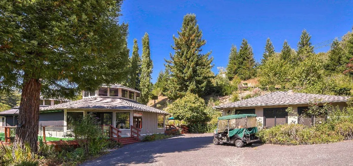 Welcome to Villa Rica...private, gated, serene! Uniquely designed with 2 octagonal wings separated by a formal entry. One wing has an open concept living/dining areas with a central sunken conversation pit that features a see-through fireplace; a stylish kitchen with walk-in pantry, induction cook-top, butler prep area, built-in desk area and features a see/pass through opening. The other wing has a central library with another fireplace, projector screen, built-in shelving; Master Suite has access to the back deck, walk-in closet, vanity, deep bathtub and spacious shower. Two other bedrooms and bathroom are enhanced with sky tubes; the laundry room features a drop down ironing board. Each wing has spiral staircases leading to loft offices with surround windows that give a 360 view of the beautiful property. Front and back decks add outdoor living. Expansive basement offers additional storage. Other features: garage has 2 EV Plugs for autos, generator, solar power.