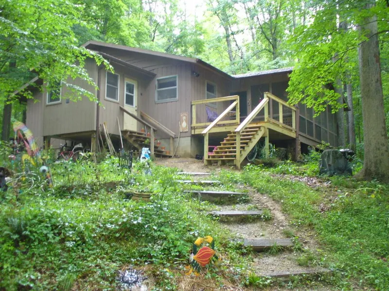Lovely 2 bedroom Brown County home. 1 1/2 baths, 1100 sq ft plus 10x24 three-season screened porch with oak flooring and deck off the porch. Flanked by hundreds of acres of Classified Forest ground, this 2.55 acre setting offers tremendous privacy while only 3 miles from town. Brown County stone fireplace with state-of-the-art wood burner, central heat/AC, newer carpeting throughout and laminate wood flooring in dining area. Gorgeous usable property overlooking seasonal creek. 2 outbuildings.