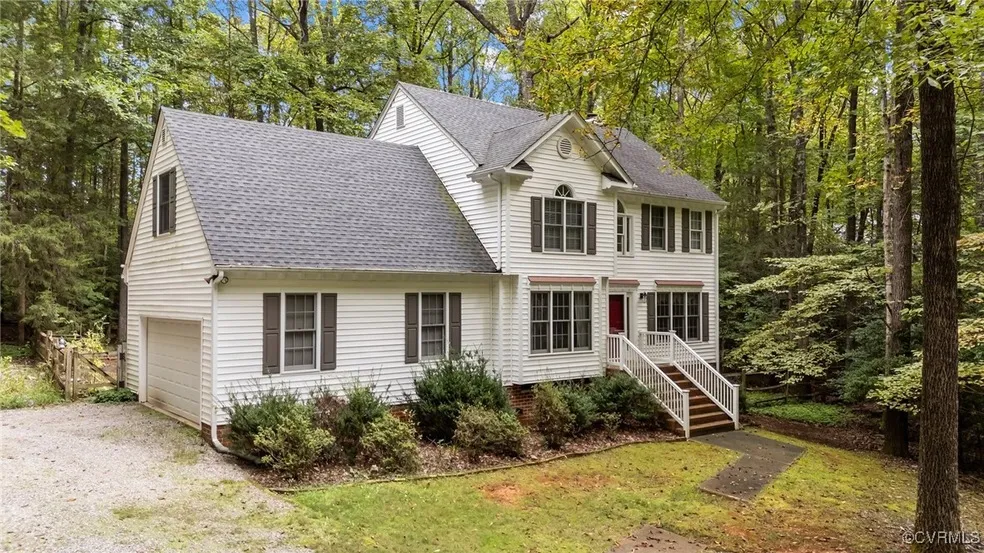 Do you want to live in Powhatan, just a few miles from Route 288 and West Creek? Take a look at this well maintained 4 bedroom, 2 and a half bath, 2,318 square feet home on a cul-de-sac. It has an incredible layout and sits on over 2.5 acres. The two-story foyer and interior glass paneled doors welcome you and lead to either the family room with gas fireplace or to the large eat-in kitchen with granite counters, two pantries and lots of light. A formal dining room, living room (that is open to the family room), a half bath, hardwood floors, and lots of beautiful chair molding complete the downstairs. The second floor has a large primary bedroom, en suite bath with a water closet, soaker tub, shower and walk-in-closet. There are also three additional bedrooms, lots of hardwood floors, and access to the walk-up unfinished attic that could easily be turned into an additional room. There's also a second full bathroom and walk-in laundry room upstairs. The long driveway leading to the attached two-car garage makes this lot feel especially private, combining acreage, walking paths, a shed, and minimal yardwork. Find the tree house in the backyard. A rear deck and newer roof are also of note. Book a tour to experience privacy while still being close to shopping and restaurants!