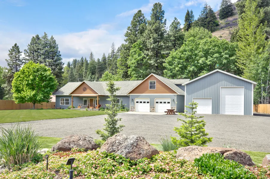 This magnificent custom built riverfront home on 2.5 peaceful acres is the best of both worlds. Enjoy outdoor recreation AND Work-From-Home with strong WIFI year round! Enjoy having a primary main floor suite on one end and two bedroom upstairs on opposite end of the house with possible 4th as an office on main. Open floor plan has views from front and back. Heating/cooling system is Geo-thermal. Private artesian well. Central A/C. Hickory cabinets in kitchen with Jenn Air stove with all the extras. Covered patio on river side for year round enjoyment. DREAM two bay over-sized heated shop with RV door with room for all outdoor toys. Seller procured inspection available. See additional features list in supplements. See VIDEO.