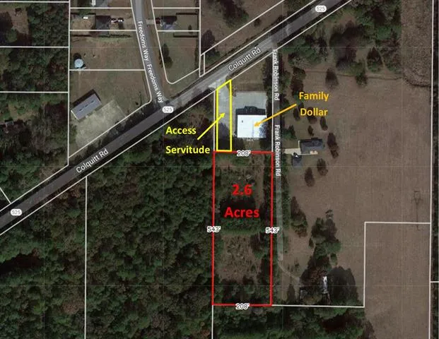 2.6 acres available for sale behind Family Dollar store located at 6565 Colquitt Road in Keithville. Access servitude in place through the Family Dollar property via concrete driveway which deadends into 2.6 acres. Access servitude and survey available upon request.Water is provided by Water District 7. Property is immediately outside of the MPCs jurisdiction, no zoning restrictions. Approximately 195 houses located on Freedoms Way directly across Colquitt Road.Great location for a single family home.
