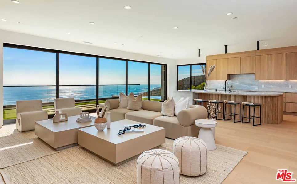 Introducing a stunning Scandinavian-inspired home designed by Vitus Mitare and interior design by Atana Collective. This brand new residence offers panoramic ocean views overlooking Point Dume and breathtaking sunsets over Broad Beach. Crafted with meticulous attention to detail, the home features wide plank oak floors, custom white oak built-ins imported from Italy, and exquisite stonework throughout.The open-concept great room seamlessly flows through a 20-foot opening to the front yard, where an almost 50-foot infinity pool awaits, perfectly positioned for sunset enjoyment. The custom island, adorned with italian marble, elegantly separates the kitchen from the living area and boasts top-of-the-line Miele appliances and bespoke oak cabinetry imported from Italy.Upstairs, you'll find three en-suite bedrooms, each with stunning ocean views. The Primary Suite includes a cozy fireplace, d...