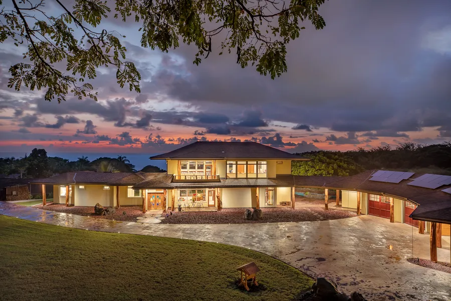 RESORT STYLE HAWAII LUXURY REDEFINED! 30 FOOT POOL WITH OVERSIZED SPA! BREATHTAKING OCEAN VIEWS! 2.6 ACRES OF LUSH TROPICAL FRUIT TREES! OWNED 32 PANEL PV SYSTEM WITH BATTERY BACK UP! A PARK LIKE SETTING WITH STUNNING TRAILS, SEATING LOCATIONS AND PATHWAYS IN ALL DIRECTIONS! "EXCEPTIONAL" is the word that comes to mind for this truly distinctive 2019 built, luxury resort estate residence with 3 bedrooms, 2.5 bathrooms and a built in office, sprawling out on 2.6 acres of tropical privacy, yet with one of the very best ocean views in Kailua-Kona! Enter this environmentally friendly resort style home in high finish and exquisite detail, through a beautiful electric gated entrance that takes you onto a grand driveway blended with stained lava style stamped concrete leading to not only extra parking locations, but to a stunning 4 car garage, one of which is an open carport. The high vaulted c...