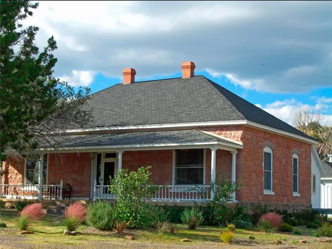 The exterior stone walls, constructed in 1903, are of locally quarried stone, the same stone used in the officer quarters at the fort thirty years before. The house echo the solid appearance of the Fort Davis officer quarters of the 1880s, Harry Griersons family home. It sits on 2.3 acre lot almost at the foot of Sleeping Lion Mountain with views of unusual rock formations and the open vistas beyond. Even though it is located in the town of Fort Davis, the home has the quiet and secluded feel of the country. Good neighbors are close by, but not too close. The windmill, water storage tank, and carriage house still stand on the property.