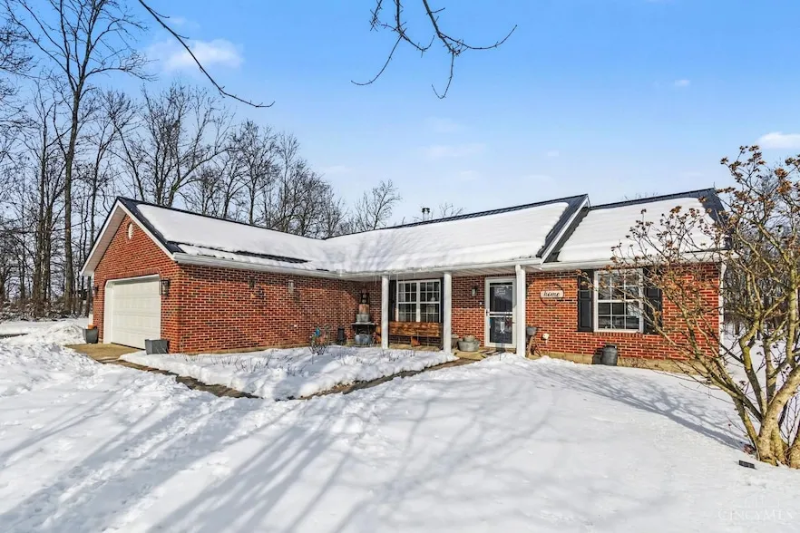 Beautifully maintained brick ranch home featuring 3 bedrooms, 2 full bathrooms, and a versatile bonus room ideal for an office, additional bedroom, or recreation space. The split floor plan offers a comfortable balance of privacy and flow. The spacious family room includes cathedral ceilings and a wood-burning fireplace, with open concept to the kitchen featuring butcher block countertops. A walkout patio extends the living space outdoors. Situated on just over 2.5 acres, the property offers ample room to enjoy the outdoors and includes a pool with a new liner for seasonal enjoyment. A detached 2-car garage adds functionality and includes heat and an industrial sized air compressor. Recent updates include a new roof, new carpet, leaf guard gutters, lighting and more.