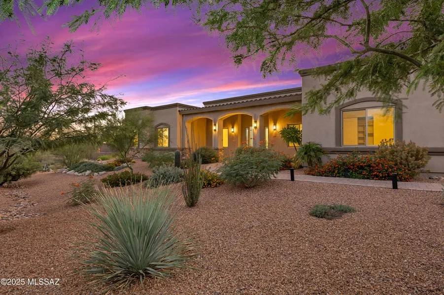 Breathtaking Catalina Mountain Views Enjoy majestic Catalina Mountain vistas and vibrant sunrises and sunsets from this stunning 2.6-acre property. This 3-year-new custom home blends elegance, quality, and comfort throughout. The expansive great room offers a versatile layout with stylish porcelain tile flooring. 12-ft ceilings throughout. The gourmet chef's kitchen features upgraded cabinetry, quartz countertops, premium Café stainless appliances—including a smart gas range with convection oven and hood, built-in microwave, and refrigerator. A large center island with seating for six and an impressive walk-in pantry completes the space. The owner's suite is a private retreat with a sitting area, spa-like bath featuring double vanities, a soaking tub, . See ''More'' comments. extended walk-in shower, and huge walk-in closet. Two additional en suite bedrooms each offer private bathrooms, providing comfort and privacy for family or guests. An oversized four-car garage with state-of-the-art rubberized flooring ensures plenty of space for vehicles, storage, or hobbies. Step outside to take in the stunning backyard views stretching across the valley. A perfect setting for peaceful outdoor living. 4th bedroom/office with large walk-in closet is versatile for any need you may have. Large Storage shed addition off garage provides ample space seasonal items, camping gear, etc. This is a premium location close to hiking, shopping, golf, medical facilities and Catalina State Park! Don't miss the opportunity!
