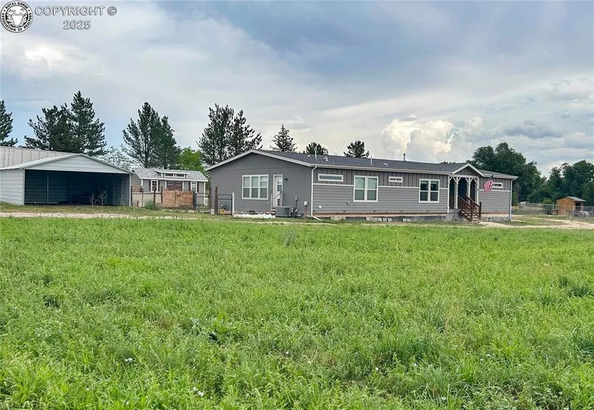 Quiet country living meets modern comfort on this versatile agricultural property featuring a well maintained 3-bedroom, 3 full bathroom modular home built in 2021. Nestled on 2.62 acres of usable land ideal for hobby farming or simply enjoying a bit more open space and privacy. Offering a spacious and efficient layout with some inset ceilings, fabulous kitchen, dedicated office and recreation room, this home is sure to impress! The kitchen is a chef s dream with an expansive island, bar seating (bar stools included!) farm sink, LG appliance package, large pantry, double ovens, gas range cook top, and the refrigerator is surrounded by food pantry cabinets. French doors lead you to the large primary suite with an attached 5 piece bathroom and huge walk-in closet. The primary bathroom boasts 2 vanities with raised countertops, oversized tiled shower, soaker tub and private water closet. The laundry room/ mechanical room has a mud sink and door to back yard and complete with doggie door. Great setup for some livestock, equestrian use, or small-scale agriculture, the property includes irrigation pipe and 5 shares of Beaver Park irrigation water! Key features include; fiber optic internet with 1 gig capability, fenced areas, nice 10x20 storage shed, 10x10 animal shelter, fenced dog run, 2 car carport, central air and a pellet stove in the living room! Whether you re starting a homestead, expanding your agricultural operations, or seeking a peaceful rural retreat, this property blends functionality, comfort, and future potential. This is a modular home made by Clayton Homes and delivered onsite, resting on a permanent concrete foundation.