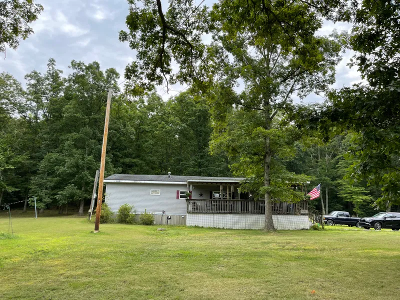 Peaceful setting for this country home. Sits on 2.63 acres with 2 covered porches to view nature. The home was a singlewide but has a large add-on, including a living room and bedroom. Shed is included for storage.