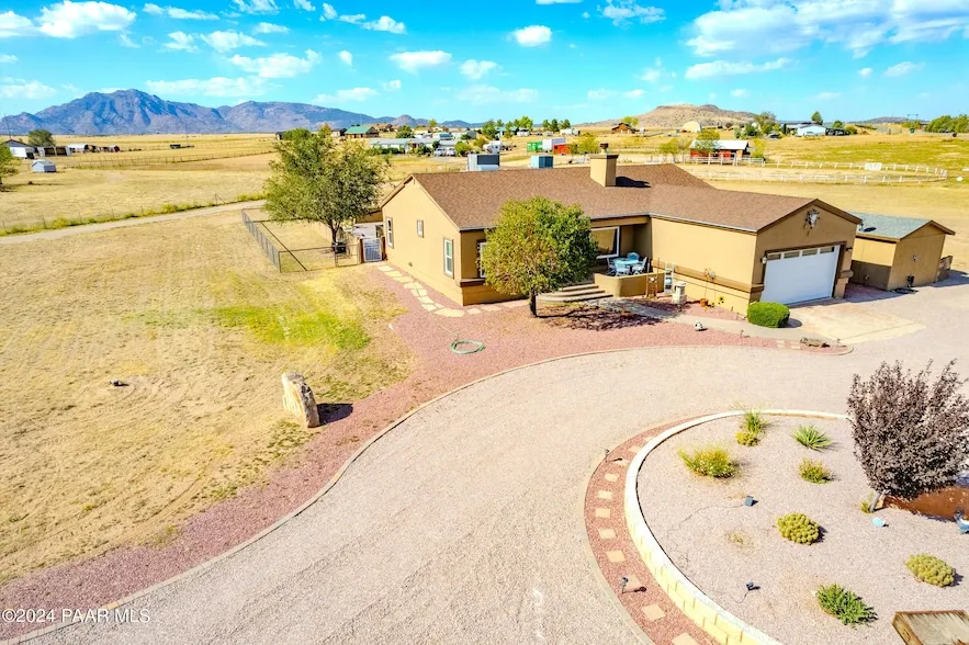 Fantastic custom built home on 2.61 acres with panoramic mountain views! This 3 bedroom, 3 bathroom also has a den/office area and wonderful back courtyard offering outdoor entertaining space including built-in BBQ. Vaulted Ceiling throughout. Living has fireplace w/pellet stove insert - adjacent to the open kitchen offering granite counter tops, pantry, tile floors, newer appliances and access to back courtyard. The large owners suite offers dual walk in closets, separate his/her vanities, large travertine shower & separate jetted tub & private toilet room w/sink. The oversized owners bedroom and access to back courtyard. Spacious 2nd & 3rd bedrooms. 2.61 acres offers plenty of space for barns, arenas, extra garages, workshops, etc. The attached extra deep garage has epoxy floor