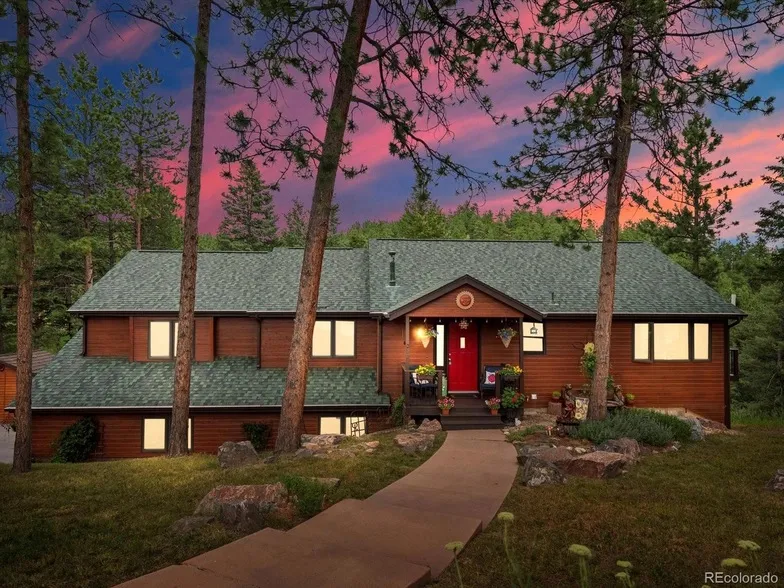 Live the Colorado lifestyle in this beautifully updated ranch-style home on a peaceful two-acre lot. With fresh interior paint and brand-new carpet throughout, this home feels clean, refreshed, and move-in ready. The main level features a spacious great room with vaulted ceilings, a cozy fireplace, and a remodeled kitchen - perfect for entertaining. The large primary suite offers a private retreat, while a guest bedroom and dedicated home office round out the main floor. Step outside to a brand-new wraparound Trex deck and take in serene views of your property with the flora and fauna below. The walkout lower level adds even more living space with two additional bedrooms, a generous rec room, and a flexible bonus room ideal for a home gym, second office, or extra storage. Car enthusiasts and hobbyists will love the oversized three-car garage with EV hookups and a sleek epoxy floor. Don't miss the charming "she shed" out back - a perfect garden hideaway or evening wine spot. Set in an ideal neighborhood with easy access to Denver, this home is also a dream basecamp for outdoor lovers. Explore miles of nearby Jeffco Open Space trails, take in the stunning beauty of Staunton State Park, or cast a line in the South Platte River. When winter calls, skip the I-70 traffic Highway 285 is the locals secret to powder days in Breckenridge. While you ll feel like you re a million miles away, you re less than 10 minutes from dining, shopping, and everyday amenities in Conifer - and just a quick cruise down Highway 285 for a night on the town or a flight out of DIA. Of course, when you live in paradise, why would you ever want to leave?