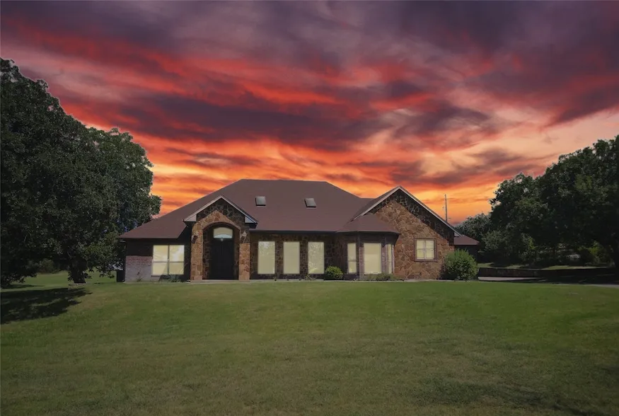 Discover your dream retreat in the heart of Aledo, Texas. This stunning, custom-built, ranch-style home is nestled on nearly 3 acres of serene, treed land. Perfect for families, pets, and horses. Enjoy the freedom of no HOA, no city taxes, and unparalleled privacy in a highly sought-after location offering the best of country living with city conveniences just minutes away. A single-level masterpiece, this home boasts thoughtful design and modern comforts, including Spacious Interiors, Rich wood molding, new neutral carpet, tile flooring, and abundant natural light from multiple skylights. The thoughtful layout features a formal dining room, an expansive living room with a stone fireplace & built-ins, a dedicated study, a large laundry room, and a Private Primary Suite with a sitting area, access to the covered back patio, and a second living room. The Gourmet Kitchen includes Custom island, GE Monogram stainless gas cooktop with griddle, double ovens, Bosch elevated dishwasher, butler s pantry, and ample counter space. Unwind on the front porch and savor breathtaking Texas sunsets, overlooking a pond framed by majestic oaks, or enjoy a morning coffee watching the wildlife and sunrises from the secluded back porch. The Oversized 2-car garage features additional storage with shelving and an In-Ground Storm Shelter for easy access without getting wet outside! With ample storage options including a lean-to and storage shed, you can bring your boats, trailers, & RVs, or add additional shops and garages without HOA or city permitting hassles!! No need for off-site storage! Just 30 minutes from Downtown Fort Worth, the Stockyards, Cultural District, Bass Hall, and Dickies Arena, this home blends rural charm with easy access to urban entertainment. And don't forget the award-winning Aledo School District!