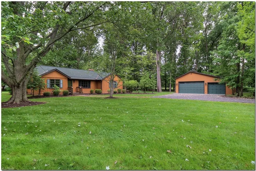 Rare find in Mentor! Beautiful ranch on quiet, wooded park-like setting on almost 2.7 acres! Pride of ownership is shown with updates throughout this home. Dining room front window allows for an abundance of natural light with views of the vast front yard. Beautiful, refinished hardwood floors in dining room, kitchen and bedrooms with complimentary wood accents. Updated kitchen with ample storage in new cabinets, quartz countertops, stainless appliances, subway tile backsplash, wood shelves and wood accents. Large family room has brick fireplace and bookcases with large patio doors leading to the deck. Bathrooms have solid surface countertops, new cabinets and tile floors. Main bath has tile surround with built-in nooks. Oversized deck with built-in hot tub for entertaining. Upgraded heated 3 car garage/workshop with 10' ceilings, 230V/50amp service (3)