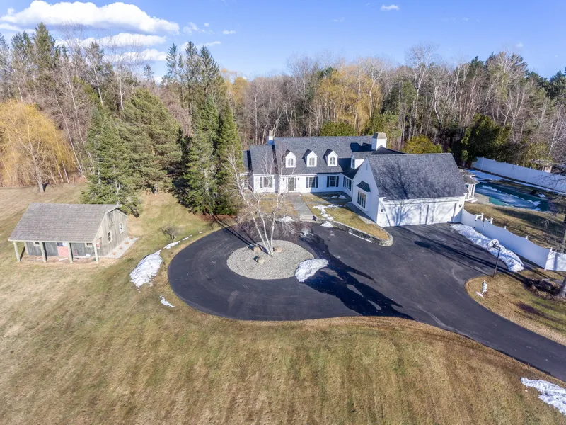 Iconic Shelburne property on 2.7 acres with subdivision potential plus 2-stall horse barn, multiple garages and a lovely expanded Cape. The home offers plenty of space for everyone including 5-6 bedrooms, 7 baths and a flexible floor plan with an in-law apartment plus first floor office/bedroom wing with private bath and separate entrance - ideal for home office or guests. The big country kitchen is perfect for gatherings featuring a large center island with seating, a cozy wood-burning fireplace, upgraded appliances and a sunny breakfast nook overlooking the pool. Step outside to the multi-level back deck to relax with your favorite beverage under the cabana before taking a dip in the in-ground pool this summer! Back inside, you'll find a comfortable owner's suite on the first level with two walk-in closets and a high end 5-piece bath including a jetted tub, separate tiled shower with glass door plus access to the deck and pool. A family room and living room, both with fireplaces, plus formal dining and mudroom off garage round out the main floor. Upstairs, you'll find 3-4 guest rooms, 3 baths and the in-law suite. The basement offers even more space with a large rec room, gym and tons of storage space. Enjoy wandering the grounds with fenced pasture and underground fenced ideal for pets, lawn games or gardening. With a 3-car attached garage and 3-car detached garage, there is plenty of room for vehicles and toys. Close to the Village, golf and all amenities.