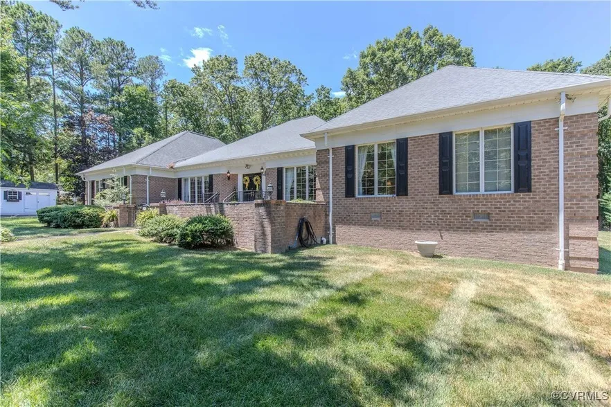 PRICE REDUCED!! Unbelievably gorgeous brick home for sale! This stunning property offers 4,000 square feet, 12 rooms, almost 3 acres of land, a water filtration system, a large deck with retractable canopies and a pergola, a circular driveway that will hold several cars, a koi pond, and stamped brick patio, a deck with a gazebo, peach trees, and SIX entrances. The main floor features the foyer with Italian brick, the enormous L-shaped living room (one section could easily be closed off to make another large bedroom), the formal dining room with an amazing custom domed ceiling, the eat in kitchen with plenty of custom birch cabinets, a butlers pantry, tile flooring and counters, and a large center island, a great room looking into the kitchen, a large cozy family room with skylights, fireplace, and a wet bar, a very large sunroom with hardwood floors, the very spacious primary bedroom with walk-in closet and private full bath, the 2nd large bedroom, another full bath, the 3rd bedroom/library with built-in mahogany cabinets and a closet, and the utility room. There is also a spiral staircase leading up to the loft, and 2 VERY large unfinished walk-in attic rooms. This house has so much to offer - so much charm, so many amenities, so many conveniences, so many lovely features and touches here and there throughout. Just immaculate. Come see it!