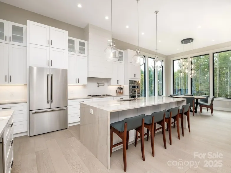 Introducing an unrivaled opportunity within the exclusive, gated Horse Shoe Cove community. At 2.7 acres, this stunning modern retreat commands the largest and most desirable lot in the entire development, offering a level of privacy and ease of use that is a often sought, yet rarely found. A distant advantage of this property is its topography: a remarkable, perfectly level full acre of manicured lawn. This flat, usable terrain is a true unicorn in our mountainous region, providing immediate, ready-to-use space for gardening, play, or a future pool, perfectly complemented by the balance of wooded privacy. The architecture and design brilliantly capitalize on the enchanting setting. This home is a testament to thoughtful design and coveted true one-level living, offering a seamless flow between the elegant interior and the flat, expansive grounds. Soaring 12-foot ceilings, 8-foot doors, ...