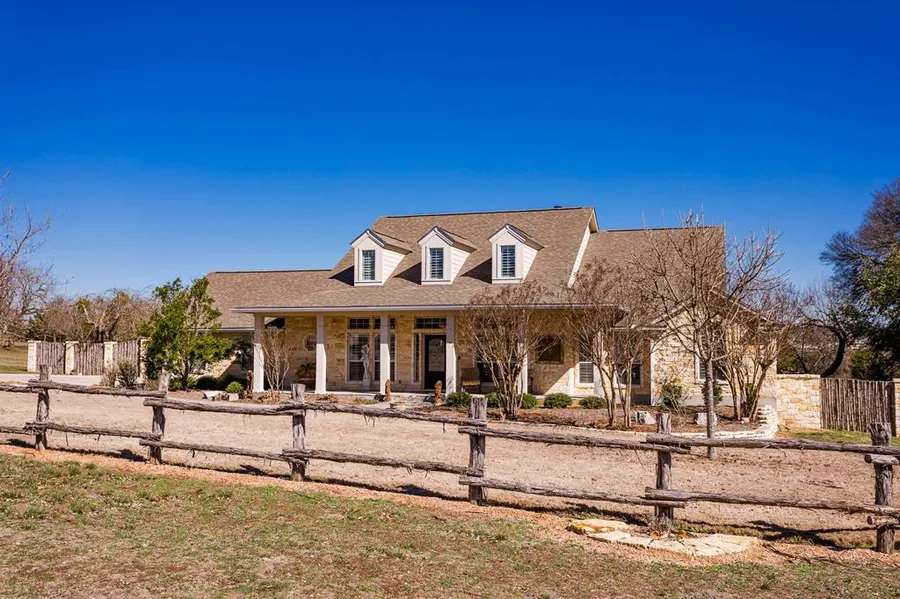 Resort-style luxury in your own backyard. This delightful property is in move in condition featuring 3 bedrooms, 3 1/2 baths plus 3 car garage. The gourmet kitchen has plenty of cabinets and drawers, granite counters and new Viking commercial gas 6 burner range. The center island is the heart of the home and opens to the Great Room with wood burning fireplace. Conveniently located between the kitchen and great room is a wine cabinet with new Viking wine refrigerator and unique custom iron door. The spacious master bedroom features double vanities, jacuzzi, walk in shower and wonderful walk in closet with room for everything. Entertain on the spacious deck overlooking the salt water pool or sit by the outdoor fireplace under the pergola while sipping a wine. The metal insulated building has a 9 ft overhead door perfect for additional vehicles and/or use as a workshop. The back yard is high fenced and very private with many trees, palms and stone planters. Yard has a 8 zone irrigation system and the tree have a drip system. For the gardeners the soil is ready for spring planting. Saddlewood Estates is a gated community with a private Guadalupe river park for your enjoyment