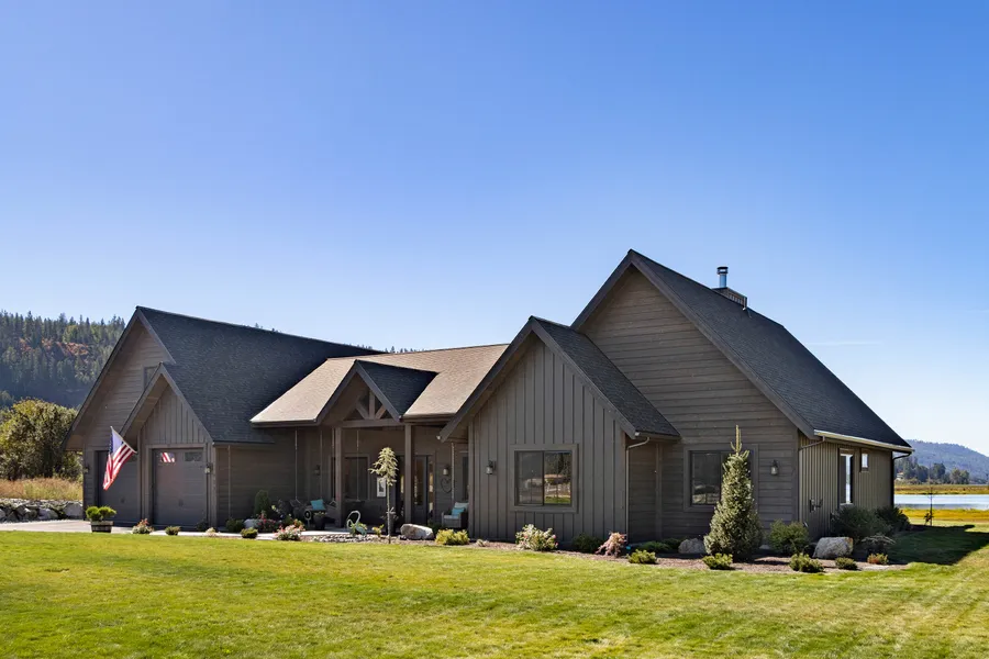 Bring your wish list to this stunning waterfront estate designed to capture amazing vistas and facilitate large or intimate gatherings with ease and style. Six total bedrooms could serve multiple generations or guests. By land, paved roads bring you home to a grand entry foyer and glorious views of the water and mountains. By water, fly in or boat to your permitted dock with gentle frontage. Huge central kitchen with only the best for the chef: induction cooktop, two convection ovens, two dishwashers, two sinks, butler's pantry and a pass-through window to outdoor dining area. Posh main suite with dressing room and lavish bath leads to patio & hot tub overlooking the Pend Oreille. Four additional bedrooms on the main floor and a bonus suite upstairs, all served by well-appointed baths provide respite for guests and family. Carefully selected components throughout include quartz counters with shimmering highlights, all wood Hickory and Maple cabinets & drawers, durable tile flooring & top-end fixtures. Expertly planned systems include efficient radiant floor heat, wood stove insert with blower, central vacuum, central a/c - beauty here goes through to the core. Perennial plantings, sprinklers, water feature and easy-care landscaping frame the outdoor living areas and the expansive lawn provides room for play. It’s an easy trip by road or on the river approximately 12 miles to Sandpoint.