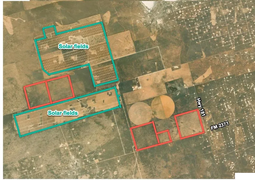 Four sections in Andrews County, TX plus one quarter, for a total of 2,720 acres. 2.5 miles of pavement border the southernmost properties starting at the NW corner of County Road 181 and FM 2371 which turns into SW 900. 1 mile of pavement on Hwy 181. These are sections 22, 24 and 1/4 of Sec 23.