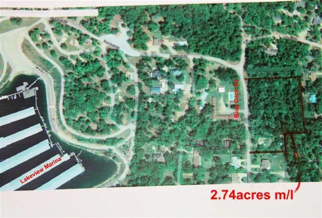 WALK TO MARINA! This 2.74 acre m/l site has an old home foundation, a 30'X40' pole barn and a gated entry. It's ready to build your weekend cabin on -- having city water and electricity available and on paved road frontage on Boat Dock Road. Priced at $34,900.