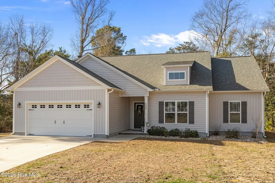 This single-story J C Jackson home offers three bedrooms and two bathrooms, located in the desirable Eli's Landing community in Newport, NC. The property seamlessly integrates comfort, convenience, and coastal lifestyle within an elegant setting. The home features a thoughtfully designed open floor plan focused on a spacious kitchen with a large island, which is well-suited for entertaining guests. A dedicated office provides an ideal environment for remote work or creative endeavors. Additional amenities include a two-car garage, tankless water heater, and a screened porch that leads to a patio equipped with a natural gas hookup for grilling. The fenced backyard ensures privacy and space for recreation, while the primary suite offers two generous walk-in closets. Positioned on 2.83 acres at the end of a quiet cul-de-sac, this residence combines generous space and tranquility with except...