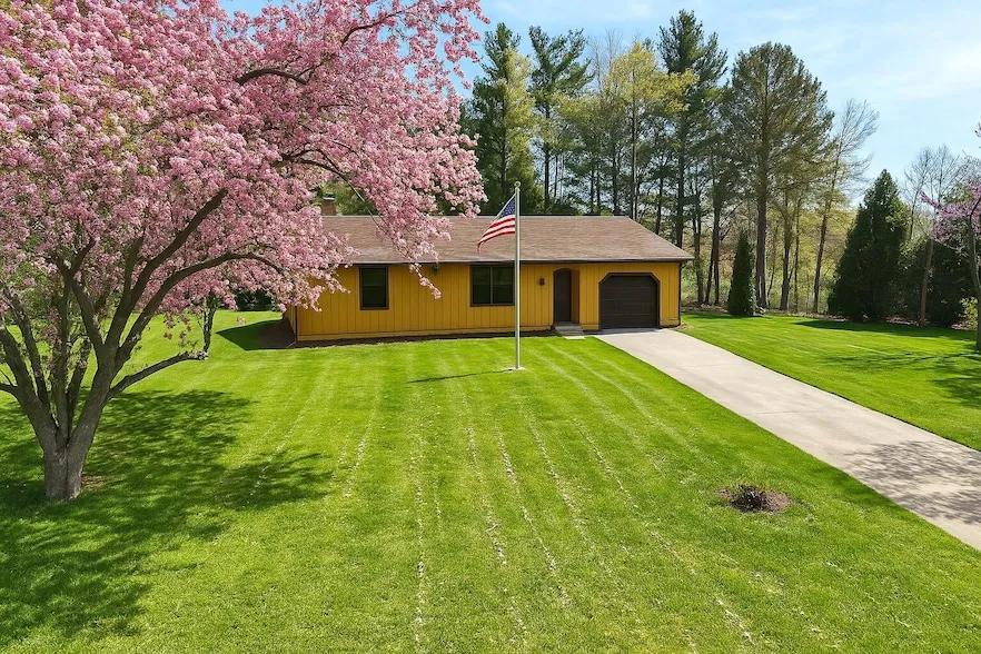 Sitting on a lovely lot on a 2.75-acre parcel is this ranch home complete with an additional stand-alone garage. 135' of road frontage. Nice spacious kitchen with a bar and dining area off to the side. The living room does include a brick wall where a wood burning stove was removed. There is a beautiful all-season room, with access to the backyard, and scenic views overlooking the neighbor's pond. Laundry room and large full bath. The attached garage is used as an additional gaming room and there is a heated stand-alone well shed. The second garage includes an outdoor covered patio. Perfect for enjoying nature and watching the visiting wildlife. Private with a long drive, surrounded by pine trees.