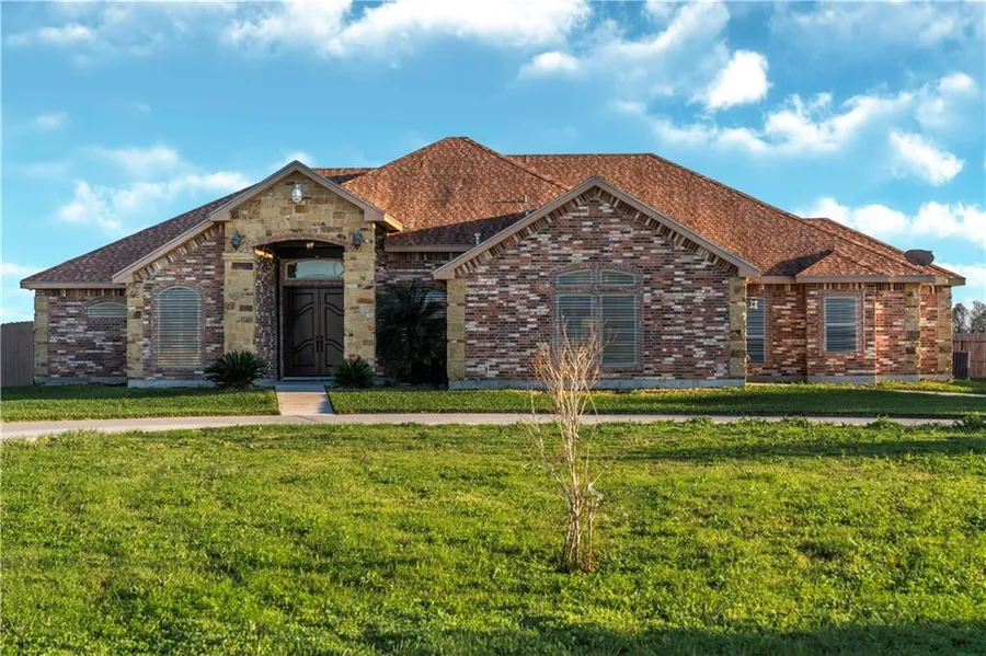 Exquisite 5 bedroom 3.5 bath w/ office on +/- 2.77 acres. This home is fully fenced w/ circular drive & automatic gate entry. The grand foyer entry boasts mosaic tile work, faux painted dome, & cantera columns. Master bath custom w/ 6' jet tub, large walk-in shower w/ full body 6 jet system & huge master closet from California Closet design. There are plantation shutters on front windows, hurricane impact on exterior windows, 5" baseboards & crown molding throughout, & tons of built-ins including separate computer nook off kitchen, catch all cabinet, & bench storage spaces. Hidden gun safe/closet w/ state of the art surveillance system w/10 cameras that monitor exterior~accessible from your smart phone, prewired for indoor/outdoor entertainment, spray foam insulation, double ovens & sub zero fridge, microwave/convection oven, huge walk-in pantry, ice maker, RO filtration system, sprinkler zoned front/back, cozy patio area w/ custom stone fireplace, pergola,pool,and 1200+/- sf workshop! For More Information call Katy Groth 361.960.0066