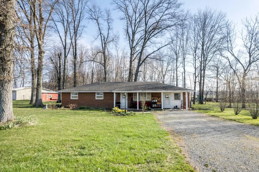 Everything your country heart could desire!! 2.78 quiet acres, 3 bedroom brick ranch, pellet stove, 30 x 24 pole building with 2 car tandem garage area & large workshop, greenhouse, storage shed, fenced garden area along with a primo chicken coop including a fenced run!! Newer laminate flooring in all bedrooms/bath! Relax around your choice of two fire pits. Who said you can't have it all??