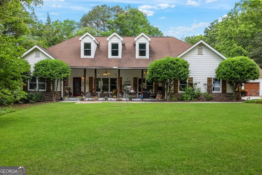 Multigenerational Living, two homes in one! This stunning home is situated on a large, private lot, centrally located at the intersection of Rockdale, Gwinnett, and Walton counties, offering easy access to shopping and major roadways, including I-20, Hwy 138, and Hwy 78 for a quick commute to Atlanta. The oversized owner's suite is conveniently located on the main level and features an elegant tray ceiling, large bathroom with separate tub and shower as well as double vanity. Two additional bedrooms are located on the main floor along with a shared full bathroom. A fourth bedroom or large bonus room is located on the second floor. The home itself is a spacious ranch with an oversized bonus room, a large custom kitchen with granite countertops, and a walk-in pantry with abundant storage. Enjoy your morning cup of coffee on the covered front porch or a peaceful evening on the covered patio featuring clear PVC roof panels that provide ample sunlight while offering weather protection. The backyard offers complete privacy as well as a firepit for those cool evenings and plenty of space for animals and includes a custom-built chicken coop with fencing. An income-generating unit sits above the oversized three-car detached garage, with its square footage included in the total home size. This garage apartment has been a successful Airbnb rental, a short-term lease, and an in-law suite.