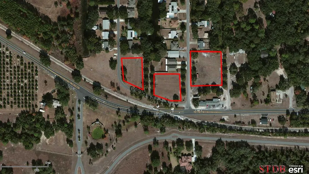 The property consists of 2.56 acres of commercial land in three parcels; plus one, 0.25 acre single family home lot. The level lots face three paved roads in rural portion of Northeast Lake County