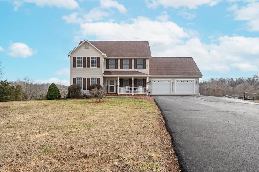 Welcome to 1087 Lake Front Court! Beautiful, charming & meticulously maintained, this spacious, two-story home is everything that you've been waiting for. The main level features hard wood floors throughout, fully equipped kitchen w/ stainless steel appliances, formal dining room, family room w/ stone fireplace, living room/office space, half bath and laundry. Walk out to the back deck for grilling and entertaining. Upstairs you will find the Primary bedroom w/ private bath & large walk-in closet; three more bedrooms & full hall bathroom. Need more storage? Walk up to the floored attic for all your storage needs. The full basement offers a spacious rec-room w/ gas log fireplace, full bath & walk out patio. All this plus an attached two car garage, new 2-zone HVAC system(2021), new fence in the back yard(2023), paved drive & a storage building on 2.8 acres w/ lake frontage. Convenient location within minutes to US 460.This is a home where you can sit back, relax & enjoy the sunset views!