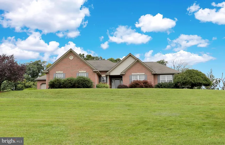 Executive style brick rancher meticulously maintained by the original owners. Panoramic views for miles. The home has a very nice flow and is an open concept with the living room, dining room, and kitchen. Kitchen and dining room have hardwood floors and the kitchen has granite countertops. Kitchen has plenty of storage space with adequate cabinets and a separate 5 foot pantry. Great room and master bedroom both have French doors that lead to a deck with a fenced 30 x 14 in-ground fiberglass pool. Great room and master bedroom also have a two sided fireplace. Master bedroom suite also has a walk-in closet and a large bathroom with a 6 foot soaking tub, separate shower and dual sinks. First floor in laundry room. Downstairs there is a huge family room with a propane stove. There is also a large storage room area. Three car garage. This is a must see house!