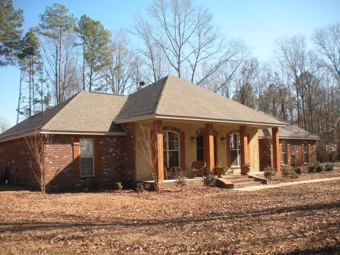 This is a jewel of a find and located within minutes of I-55 and Copiah Academy. Let's begin with the setting of this home!!!! It is situated on a 2.8 acre wooded lot which has been well maintained and cleaned. French Acadian style with raised foundation - Front porch is so inviting - come on in and let's take a look---Upon entrance through the double doors you will find a huge living area with Australian Cypress flooring - talk about pretty!! There is a working fireplace in the living room with a gas starter. Kitchen is something to take a look at with all built-ins including oven, microwave, dishwasher, pantry and a breakfast area which is also built in with cabinets. 3BR/2BA split plan - nice master suite with master bath which has a jacuzzi tub and seperate oversized shower. Living room has 10' ceilings, kitchen/dining area has 9' ceilings, 8' ceilings in the sunroom and all bedr...