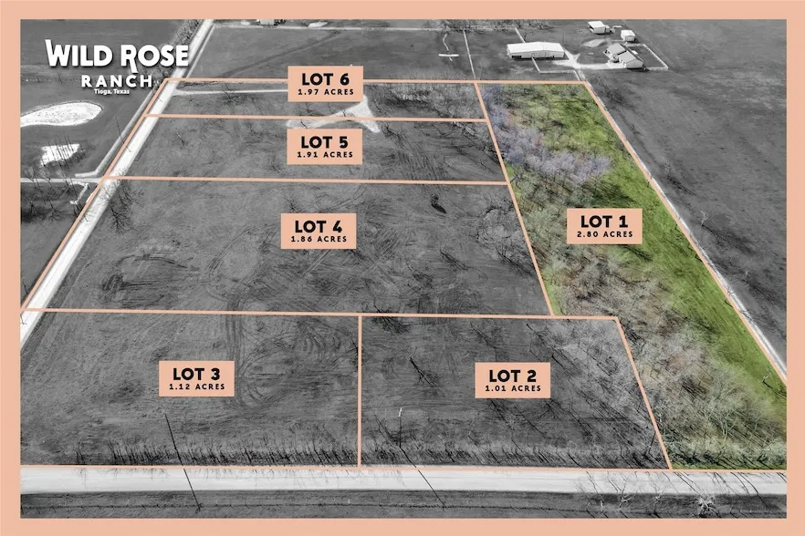 HUGE PRICE DROP! ALMOST THREE ACRES OF READY TO BUILD LAND FOR YOUR CUSTOM HOME OR UPSCALE BARNDOMINIUM FOR UNDER 300K IN GRAYSON COUNTY!! Start Building Your Custom Dream Home Now on this 2.80 ACRE Lot in Wild Rose Ranch in Tioga, Tx! Lot Comes Fully Equipped with Water, Electric and Roads. NO City Taxes, NO MUD, NO PID and NO HOA. Lot is in Close Proximity to Dallas North Tollway Providing Easy Access to Prosper, Celina and Frisco and all the Shopping and Stores Including the Upcoming HEB and Costco. Choose to Either Bring Your Own Custom Home Builder, or On-Site Builder Wesley Farr Homes Can Assist You in the Building Process! BARNDOMINIUMS WELCOME! This 2.80 ACRE Tract of Land is Suited for an Amazing Custom Home with a LARGE Build Site and 100 Feet of Road Frontage. Horses, Chickens, Cows, Longhorn, Bulls, Llama, Buffalo, Sheep and Goats are Allowed! Accessory and Detached Buildings...