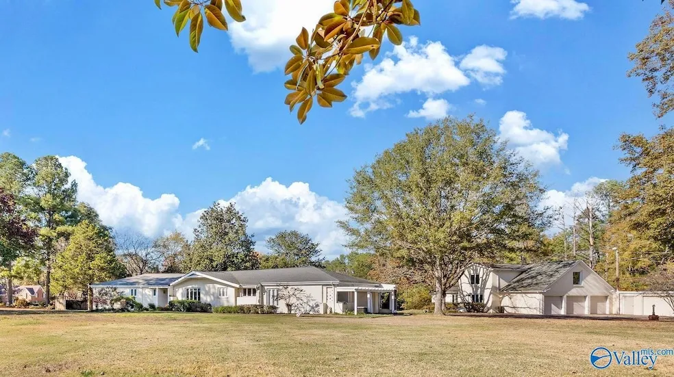 Don t miss this mid-century modern with endless potential, tucked away on 2.8 acres in Hartselle. Offering 4,538 sqft of living space, the main level includes 3 bedrooms, 3 spacious living areas, and a formal dining room. The full basement provides even more versatility with a large den and 2 additional bedrooms ideal for guests, in-laws, or a teen suite. A 1,659 sqft detached garage features a 1,012 sqft finished bonus room above and parking for up to 5 vehicles, plus a private rear driveway for added convenience. Outdoor living shines with a 1,214 sqft screened porch and built-in kitchen perfect for entertaining or relaxing. A rare find combining space, style, and privacy!