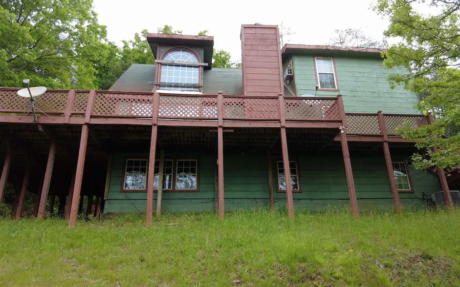This is a true Diamond in the Rough. A lot of square footage for the money. Originally built as a lodge with bedrooms on the lower level, and an entertainment venue on the main floor. The entertainment area has a big fireplace, kitchen area, and men and ladies' rooms. There is also a large room that could be a pantry/laundry room. The 3rd level is an owner's ensuite with a jetted tub and a shower. The house sits on the corner of 3AC and has a noisy creek across the road. There is a short-range Mountain view, which lets you know you are part of the mountain atmosphere. Sold as-is and priced accordingly. There is currently no water, a well will have to be drilled. USE CAUTION WHEN WALKING ON DECK.
