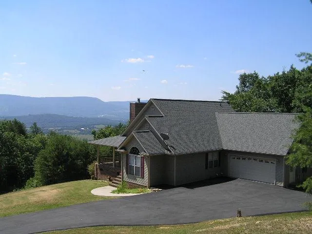 This home has miles of views from the fornt yard and from two decks. You can see across the valley form the bay windows in the dining room and kitchen. Harwood floors, jettred tub, gas logs, city water, on a paved street.