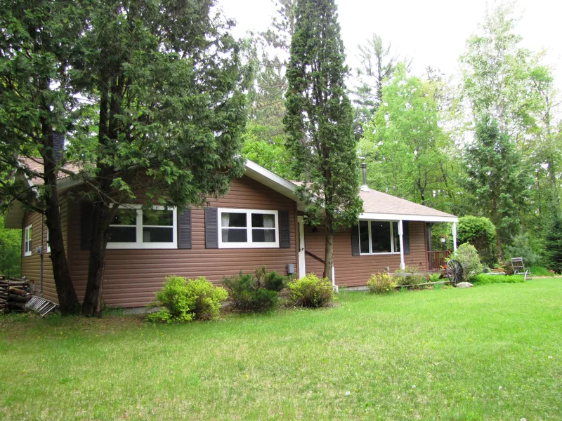 Serene setting in a private area near town featuring apprx 540' of sandy meandering frontage on Johnson Lake (Class A Musky)/Johnson Creek. This property includes a 3BR, 2BA raised ranch with a partially-finished walkout lower level. The main level features an open-concept kitchen/dining area/living room with cathedral ceilings, wood-burning stove, & ceiling fan (central air is also incl.). A screened porch & open sun deck offer additional areas for entertaining with creek views. The main-level dining area & lower-level family room offer views overlooking Johnson Creek & the property's wooded backyard. The lower level also includes an open sleeping area, full bathroom, gas stove, workshop area, & extra storage space. Step outside to a gradual slope on historical Indian trails down to the property's private dock on Johnson Lake. Trails also lead gradually down to Johnson Creek, with a fir...