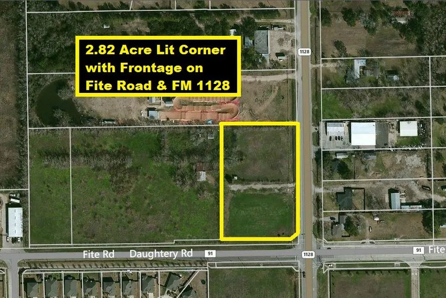 Cleared 2.83 Acres on Traffic Light Corner w/370 ft FM 1128 Rd Frontage & 278 ft Fite Rd Frontage. City Utilities! Caddy-corner to Rogers Middle School! By Cullen Pkwy, FM 518, Dads Club Community Park, Berry Miller Jr High & Cinema. Close to Silver Lake & Southwyck Master Communities, Centennial Park, TX-35 & Fire/Police. Minutes to TX-288, BW-8, Pearland Town Center, Shadow Creek Ranch Master Community, Tom Bass Park, Pearland Natatorium. Zoned General Commercial! Perfect for Gas Station/Convenience Store, Grocery Store, Office, Self Storage, Restaurant, Urgent Care, Senior Care Facility, Private School, Church, Day Care, etc. Additional Acreage Available: Up to 12.26 acres at Fite Rd & FM 1128 traffic light! Can Be Subdivided: 1.0 Acre Hard Corner w/Traffic Light & 1.83 Acre Wraps Lit Corner of FM 1128 & Fite.